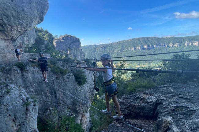 Descente dans le lit d’un canyon qui s’est asséché au fil du temps pour nous laisser un magnifique terrain de jeu où vous pourrez descendre de multiples rappels, des jeux de mains courantes, une tyrolienne… Tout cela dans un cadre magnifique surplombant les Gorges du Tarn.